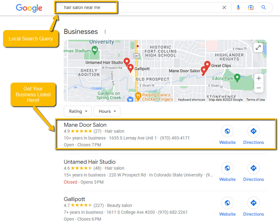 Local search displays results to the researcher based on their current location. Here’s an example: you search, ‘Hair Salon Near Me.’ Now, Google will provide you with the results, with the best optimize businesses at the top.