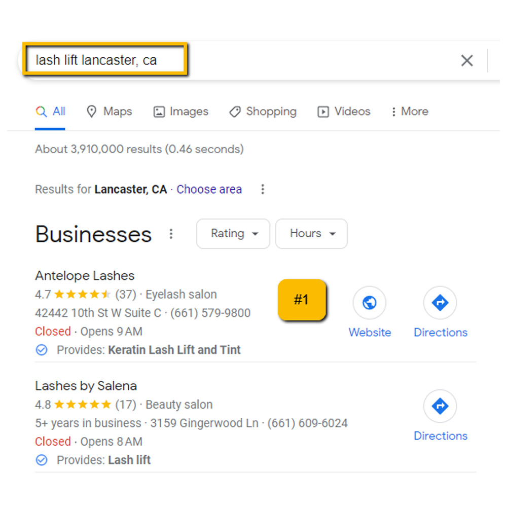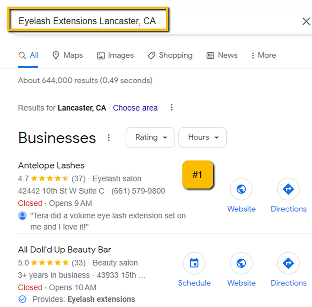 Our client, a lash extension artist based in a competitive area of Southern California, was opening up their lash extension salon and needed to create an online presence and start ranking on search engines as quickly as possible.