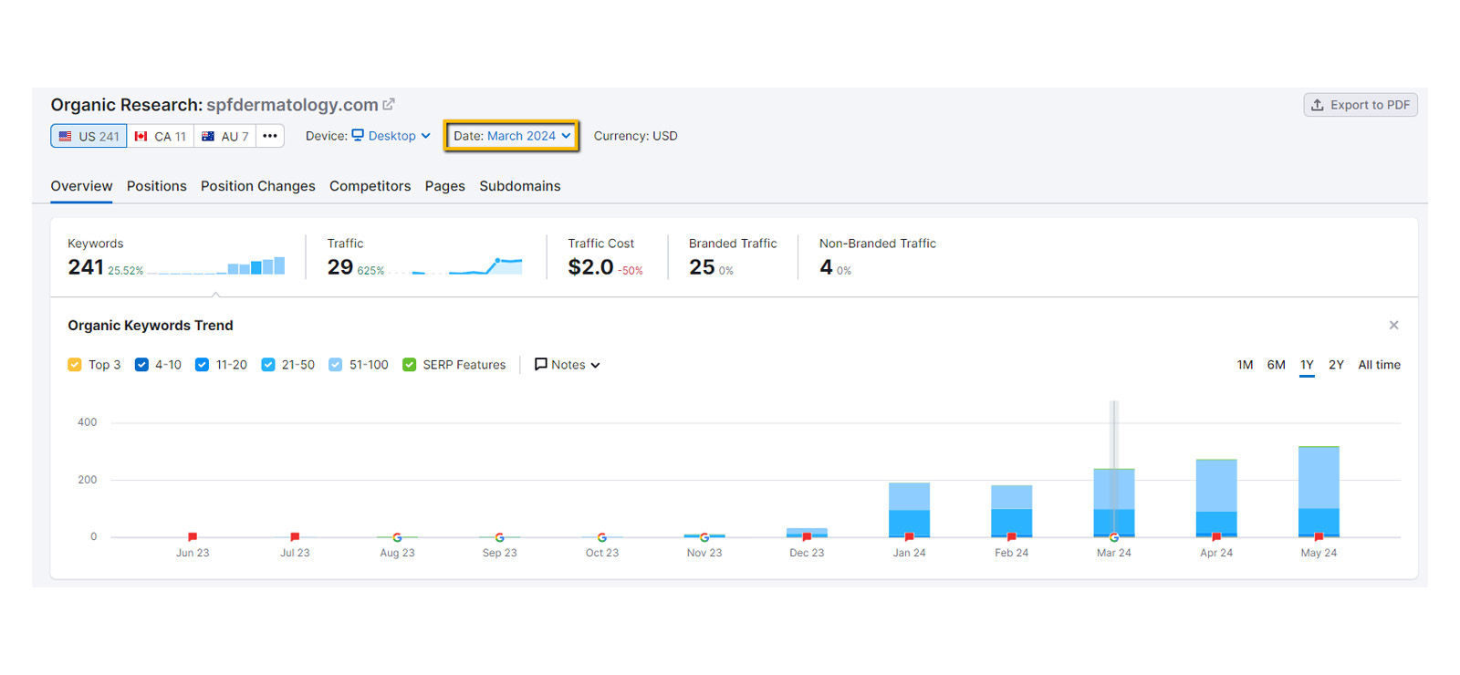S.P.F. Cosmetic Dermatology, a premier med spa in Southern California, partnered with us to redesign their website and enhance their local SEO presence. Their previous site lacked optimized content and was virtually invisible on search engines. Our goal was to create a robust online presence that would drive traffic and convert visitors into clients.