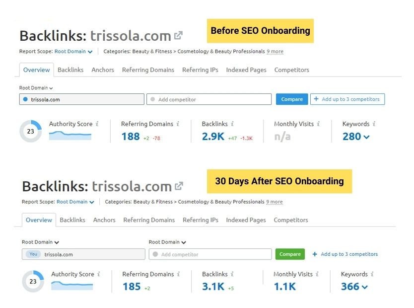 Our eCommerce SEO for beauty products strategy helped our client achieve the following results: